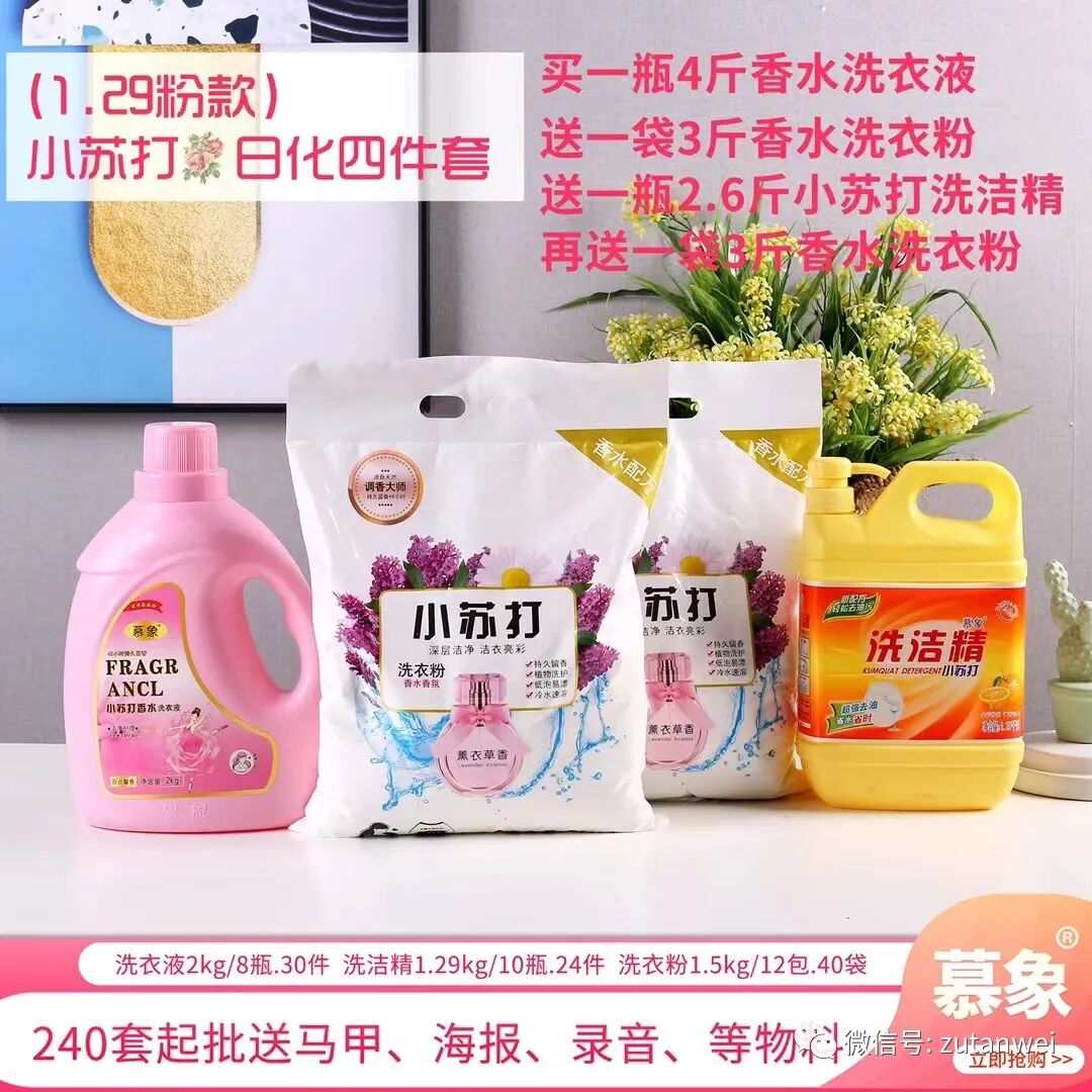 春天摆摊卖洗衣液,洗衣粉,日化系列的产品很赚钱,今天给大家推荐几款洗衣液洗衣粉日化四件套三件套系列的货源!